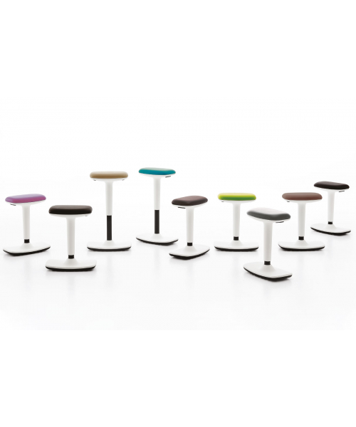Стул мастера "Flex stool" - это качающийся табурет с сиденьем из пеноматериала, покрытым скай, доступный в 14 цветах. Он оснащен двойной кнопкой для регулировки высоты (ход 230 мм). Основание выполнено из антискрипной резины.