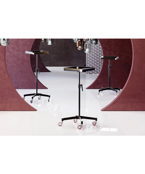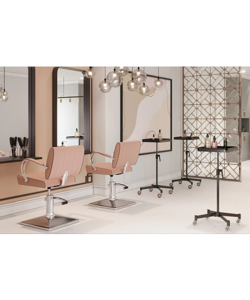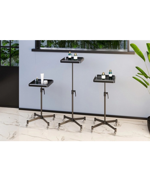 Ассистент колориста NA0057-оснащен надежными прорезиненными колесиками, обеспечивающими бесшумное и быстрое перемещение. Столик выполнен из пластика, ножка и основание – из хромированной стали. Предусмотрены отверстия для инструментов, углубления для чаши и ролик для фольги. В комплекте две кисточки, две чаши и шейкер.